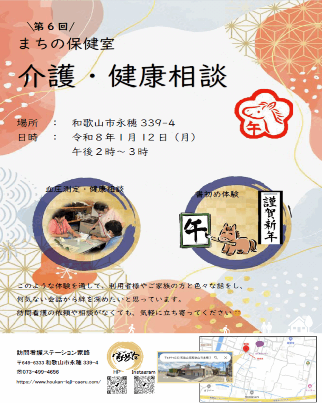 和歌山市永穂339-4訪問看護ステーション家路事務所にて開催いたします。